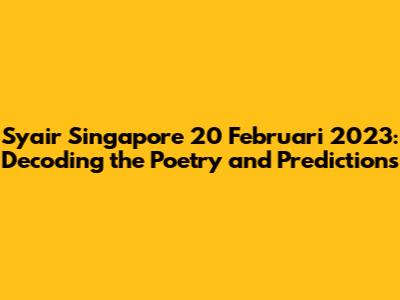 Syair Singapore 20 Februari 2023: A Comprehensive Guide