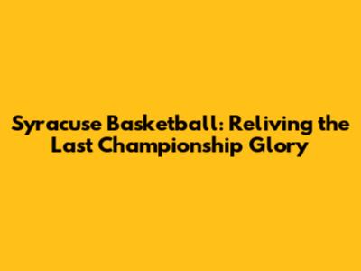 Syracuse Basketball: Reliving The Last Championship Glory