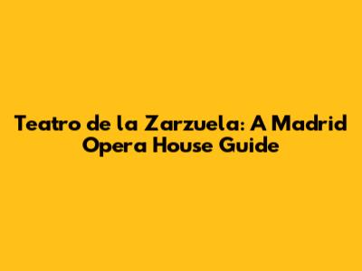 Teatro De La Zarzuela: A Madrid Opera House Guide