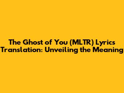 The Ghost Of You (MLTR) Lyrics Translation: Unveiling The Meaning