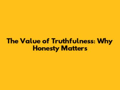 The Value Of Truthfulness: Why Honesty Matters