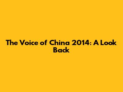 The Voice Of China 2014: A Look Back