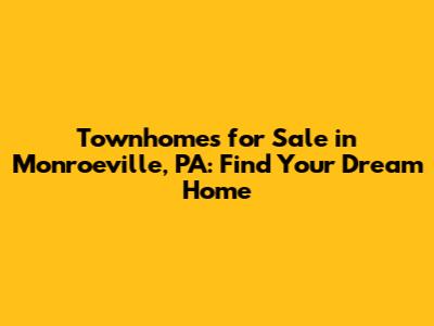 Townhomes For Sale In Monroeville, PA: Find Your Dream Home