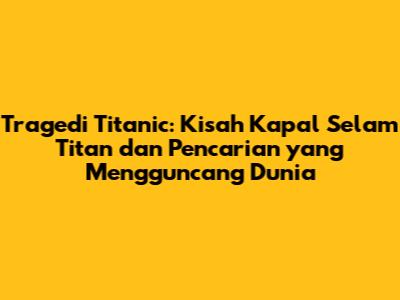 Berita kapal selam Titanic selalu menjadi topik hangat dan menyedot perhatian dunia. Tragedi yang melibatkan kapal selam Titan, yang melakukan ekspedisi ke bangkai kapal Titanic, menjadi sorotan utama. Mari kita telaah lebih dalam mengenai peristiwa ini, mulai dari tragedi Titanic itu sendiri hingga upaya pencarian dan penyelamatan yang heroik.