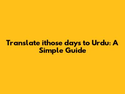 Translate ithose Days To Urdu: A Simple Guide