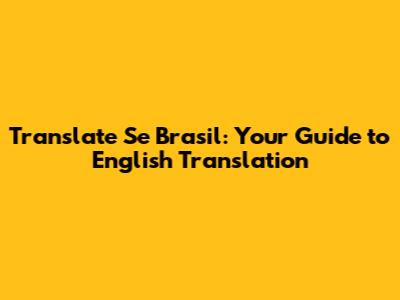 Translate 'Se Brasil' To English: A Comprehensive Guide