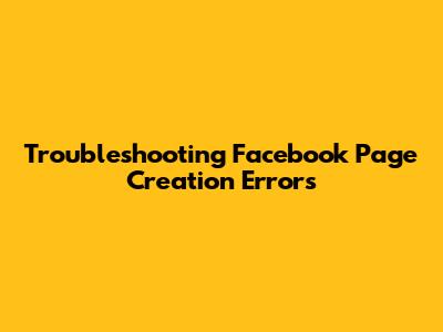 Troubleshooting Facebook Page Creation Errors