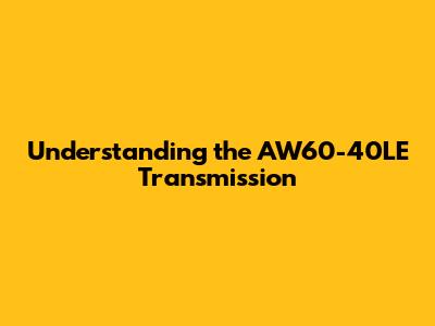 Understanding The AW60-40LE Transmission