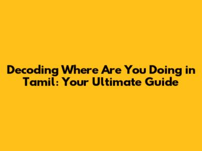 Understanding 'Where Are You Doing' In Tamil: A Comprehensive Guide