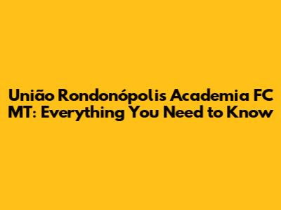 União Rondonópolis Academia FC MT: Everything You Need To Know