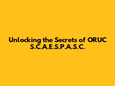 Unlock The Secrets Of ORUC S.C.A.E.S.P.A.S.C.
