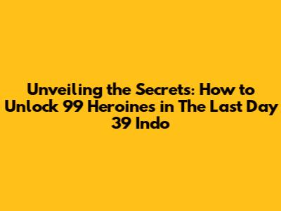 Hey guys! Ready to dive deep into the world of "The Last Day 39 Indo" and unlock all those awesome heroines? We're talking about a game that's all about strategy, character development, and of course, a little bit of waifu collecting! If you're anything like me, you're probably itching to get your hands on every single heroine this game has to offer. Don't worry, you're in the right place! We'll break down the game's mechanics, explore different strategies, and uncover the best ways to expand your roster. Get ready to level up your gameplay, because we're about to embark on a journey to unlock all 99 heroines in "The Last Day 39 Indo"! This guide is designed to be your ultimate companion, covering everything from the basics to the more advanced tactics. So, grab your favorite snacks, settle in, and let's get started. Remember, patience is a virtue, and with the right approach, you'll be well on your way to becoming a true "The Last Day 39 Indo" master. We will explore the different ways to obtain heroines, from completing quests and events to utilizing in-game resources effectively. Let's make sure you don't miss out on any of the fantastic characters this game has to offer! We will discuss the importance of resource management, team building, and understanding each heroine's unique abilities. Let's start with a general overview to get us warmed up.