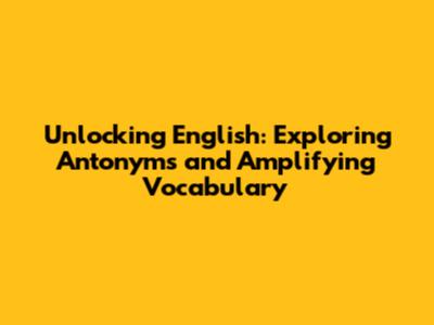 Unlocking English: Exploring Antonyms And Amplifying Vocabulary