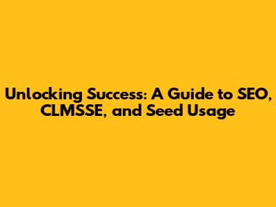 Unlocking Success: A Guide To SEO, CLMSSE, And Seed Usage