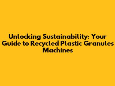 Unlocking Sustainability: Your Guide To Recycled Plastic Granules Machines
