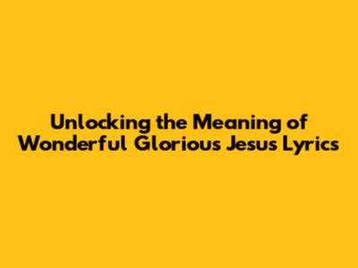Unlocking The Meaning Of Wonderful Glorious Jesus Lyrics