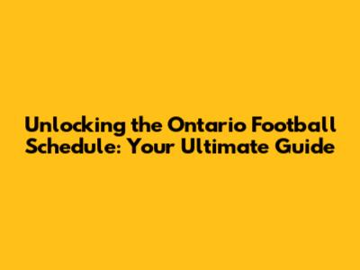 Unlocking The Ontario Football Schedule: Your Ultimate Guide