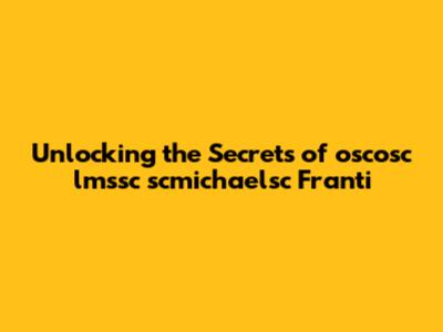 Unlocking The Secrets Of Oscosc Lmssc Scmichaelsc Franti