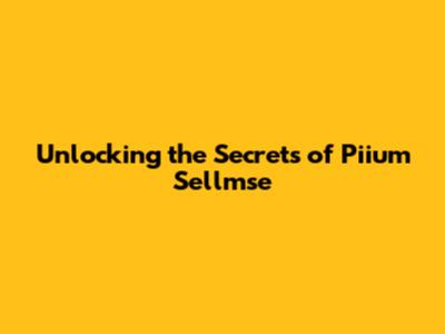 Unlocking The Secrets Of Piium Sellmse