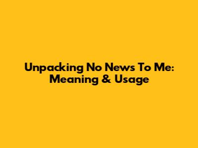 Unpacking No News To Me: Meaning & Usage