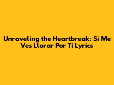 Unraveling The Heartbreak: Si Me Ves Llorar Por Ti Lyrics