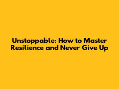 Unstoppable: How To Master Resilience And Never Give Up