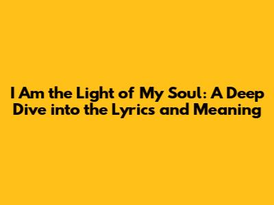 Unveiling 'I Am The Light Of My Soul': Lyrics & Meaning