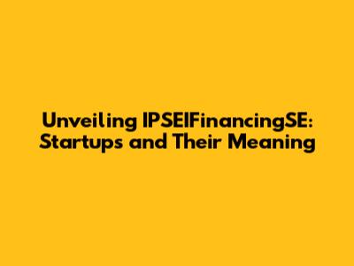 Unveiling IPSEIFinancingSE: Startups And Their Meaning