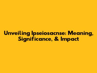 Unveiling Ipseiosacnse: Meaning, Significance, & Impact