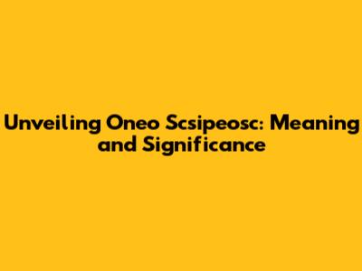 Unveiling 'Oneo Scsipeosc': Meaning And Significance