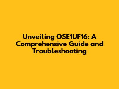 Unveiling OSE1UF16: A Comprehensive Guide And Troubleshooting