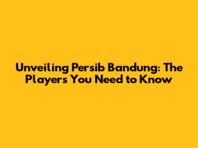 Unveiling Persib Bandung: The Players You Need To Know