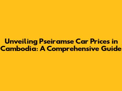 Unveiling Pseiramse Car Prices In Cambodia: A Comprehensive Guide