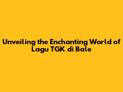 Hey music lovers! Ever stumbled upon a song that just grabs you, pulling you into its world? Well, if you haven't yet experienced the magic of Lagu TGK di Bale, you're in for a treat. This isn't just a song; it's a journey, a feeling, a cultural experience all rolled into one. Let's dive deep into the heart of this mesmerizing piece of music, exploring its origins, its impact, and why it continues to captivate listeners.
