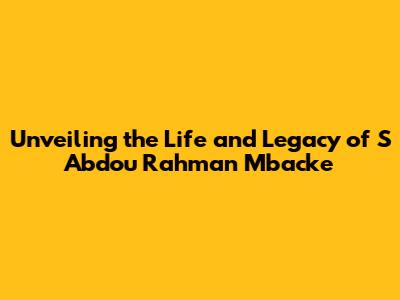 Unveiling The Life And Legacy Of S Abdou Rahman Mbacke