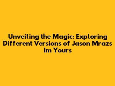 Unveiling The Magic: Exploring Different Versions Of Jason Mraz's 'I'm Yours'