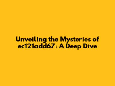 Unveiling The Mysteries Of Ec121add67: A Deep Dive