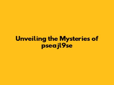 Unveiling The Mysteries Of Pseajl9se