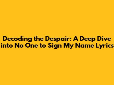 Unveiling The Pain: 'No One To Sign My Name' Lyrics Explained