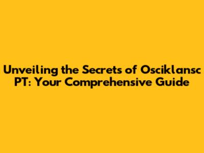 Unveiling The Secrets Of Osciklansc PT: Your Comprehensive Guide