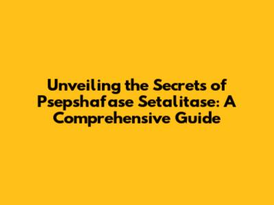 Unveiling The Secrets Of Psepshafase Setalitase: A Comprehensive Guide