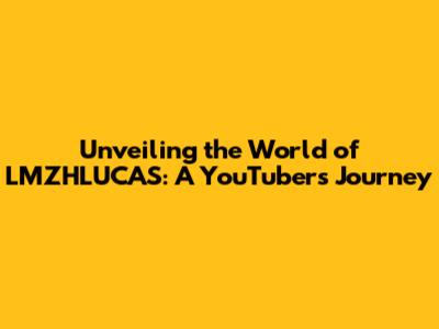Unveiling The World Of LMZHLUCAS: A YouTuber's Journey