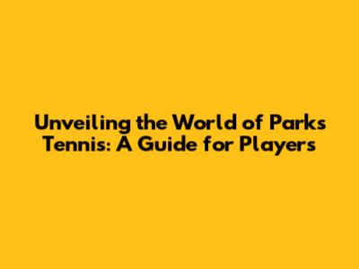 Unveiling The World Of Parks Tennis: A Guide For Players