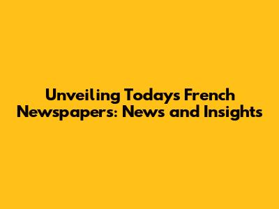 Unveiling Today's French Newspapers: News And Insights