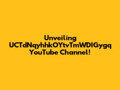 Unveiling UCTdNqyhhkOYtvTmWDIGygq YouTube Channel!