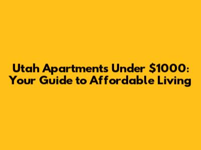 Utah Apartments Under $1000: Your Guide To Affordable Living