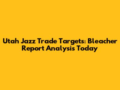 Utah Jazz: Trade Targets And Bleacher Report Analysis Today