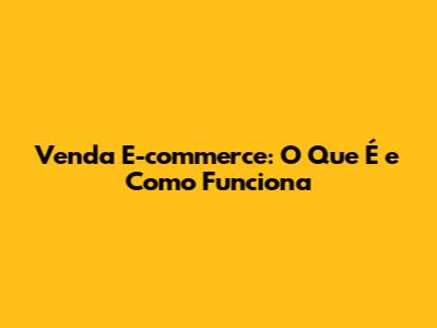 Venda E-commerce: O Que É E Como Funciona