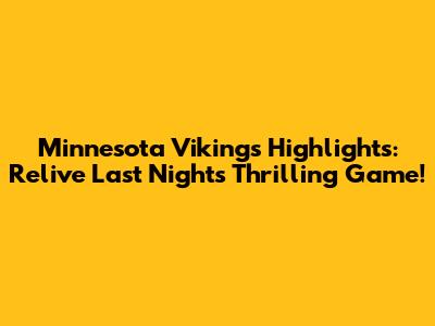 Vikings Highlights: Relive Last Night's Thrilling Game!
