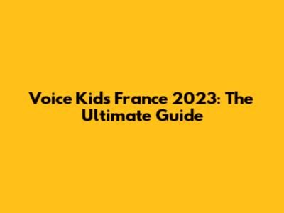 Voice Kids France 2023: The Ultimate Guide